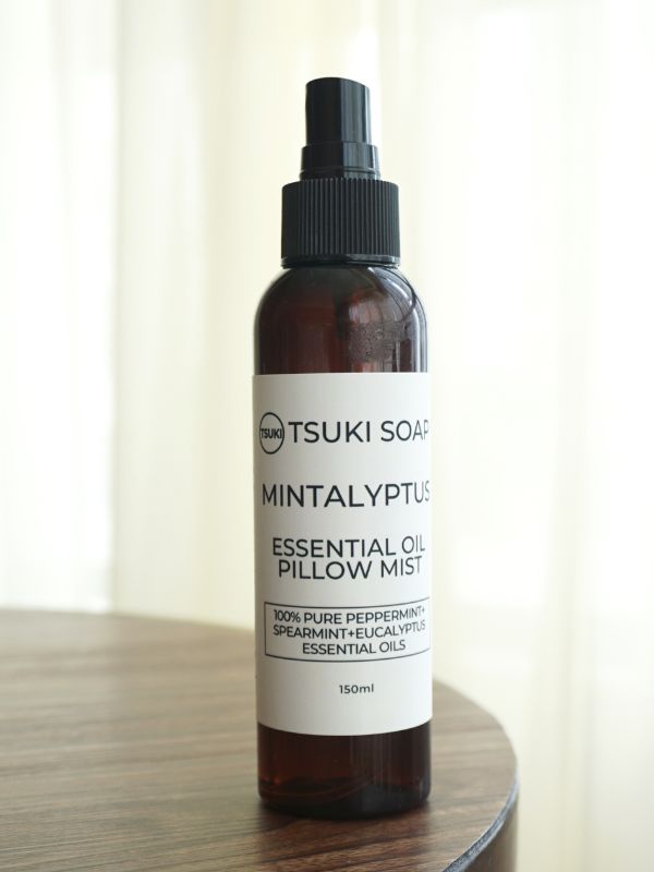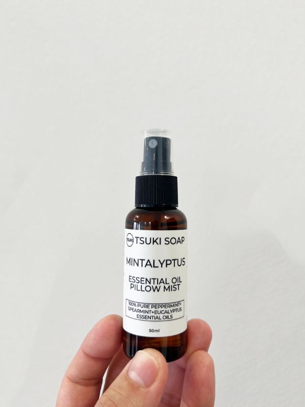 Relaxing and calming pillow mist. Our Mintalyptus essential oil blend of peppermint, spearmint and eucalyptus is also perfect for linens, clothing and fabric furnishings.